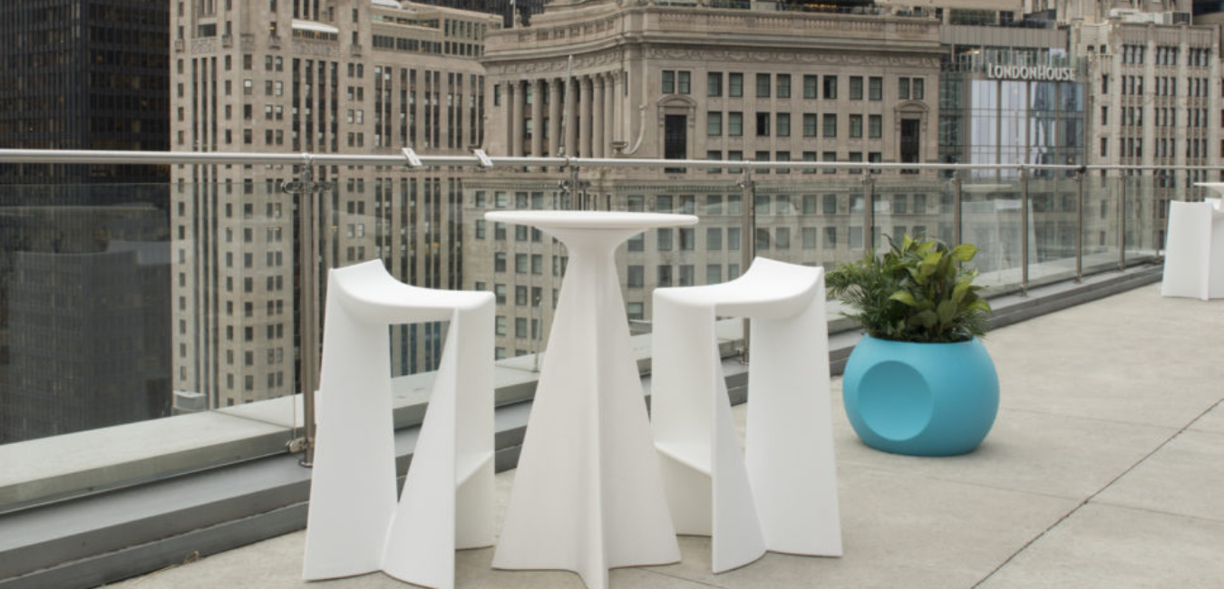 A stretched, continuous shape folded and flared into being, Jux™ is a dynamic bar and dining set with size and finish options for every environment. The collection is smooth and sculptural, while still conveying strength and durability.